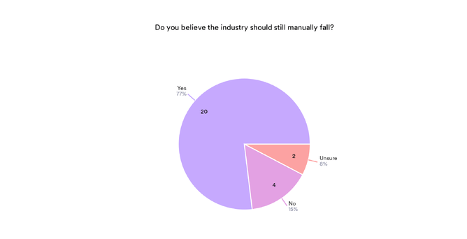 In answer to the question ‘Do you believe the Industry should still be manually falling’ 77% said yes.