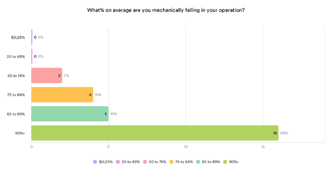 All those that responded had mechanised felling capability with 60% of respondents felling 90%+.