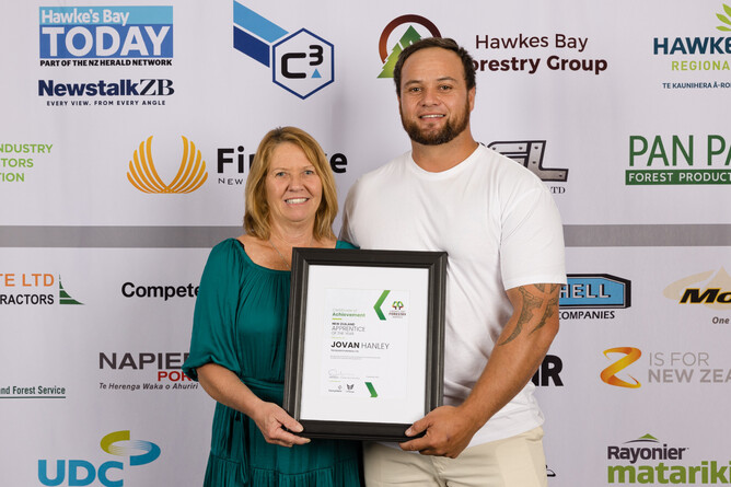 Congratulations Jovan Hanley, Tressidder Punanga Ltd, Apprentice of the Year at the 2022 Hawkes Bay Forestry Awards.