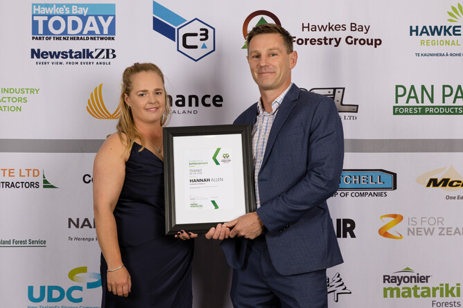 Hannah Allen, Chimpmunk Logging, is the 2022 Trainee of the Year at the Hawkes Bay Forestry Awards.