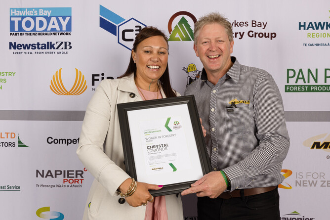 Described as very firm but kind and with a generous nature which can be an asset when it comes to dealing with staff, Chrystal Edmonds is the 2022 Woman in Forestry winner at the 2022 Hawkes Bay Forestry Awards.