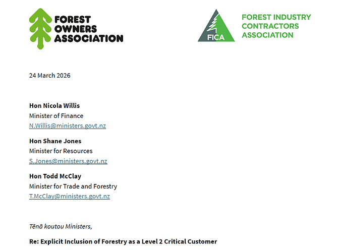 We are writing on behalf of the New Zealand Forest Owners Association and Forest Industry Contractors Association to emphasise the importance of explicitly including forestry as a Level 2 critical customer in the National Fuel Plan, particularly to support both domestic sawmills and export continuity during periods of fuel, freight, or supply chain disruption.