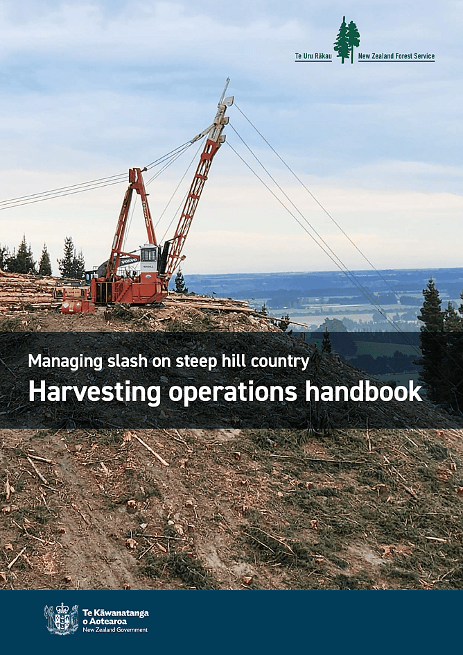 Te Uru Rakau recently completed Harvesting Operations Handbook: Managing Slash on Steep Hill Country. This is an abbreviated version of the Slash Risk Management Handbook and is targeted more at contractors and forestry operational staff.