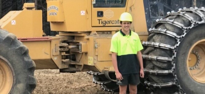 Working as a machine operator for Roxburgh Contracting under the FICA MSD Harvesting Subsidy, school-leaver Callum Maze is loving working in logging and working outdoors.