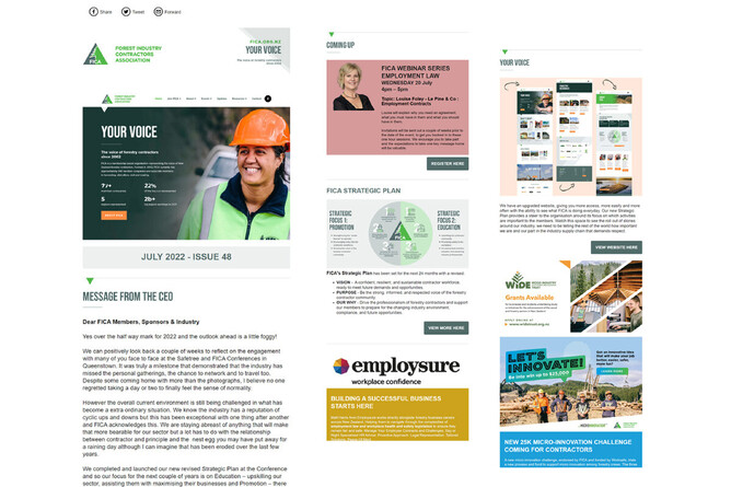The webinar series has completed its final fourth session and as they have been so well received we plan to extend this forum across the next few months with more webinars based around your suggestions. Get yourself registered for the next one:July 20 Wednesday– Louise Foley : Le Pine & Co Employment agreements – "what should be in them and why" and finally I am really excited about the new website for FICA which has created a site with a far greater presence, more information, more accessible and it will be continually updated. Thanks to Frank Communications, grahics will roll out to all our other collateral, face book, magazine pages and the general look and feel of FICA with a spit and polish!