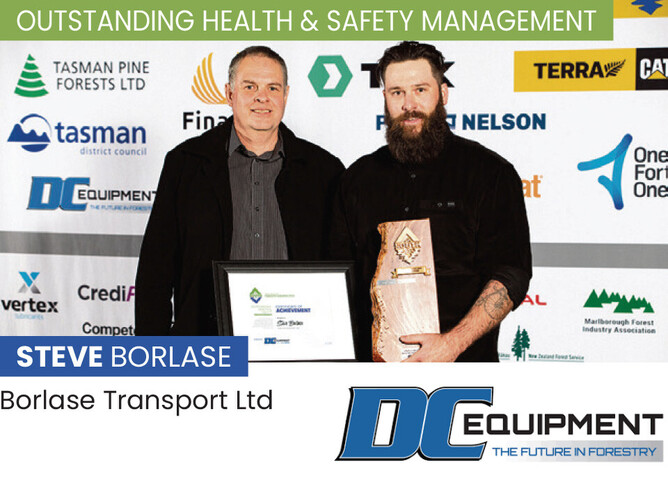 Congratulations Steve Borlase – Borlase Transport, Outstanding Health and Safety Management Award at the 2022 Top of the South Forestry Awards.
