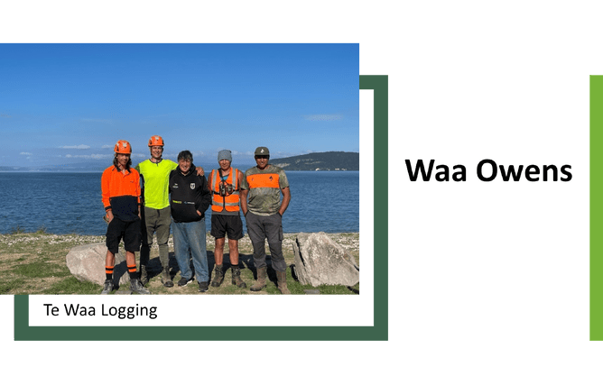 With an extremely community-oriented focus, Waa Owens is all about creating employment opportunities for his people. He has won the Best Native Forestry Enterprise Award at the 2022 Central North Island Wood Council Forestry Awards.